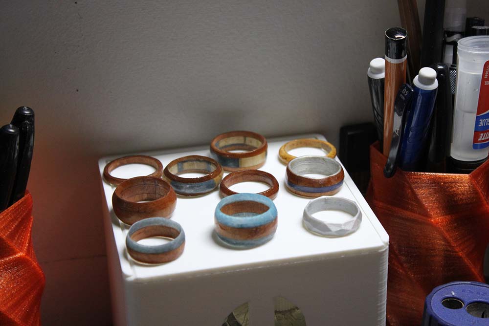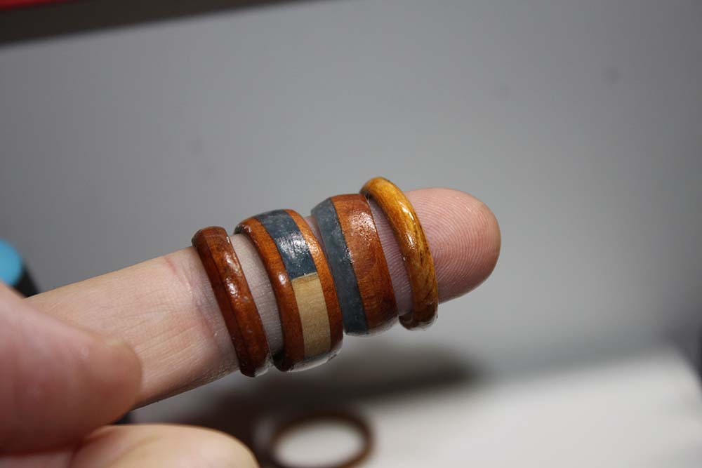 Turned wood and resin rings