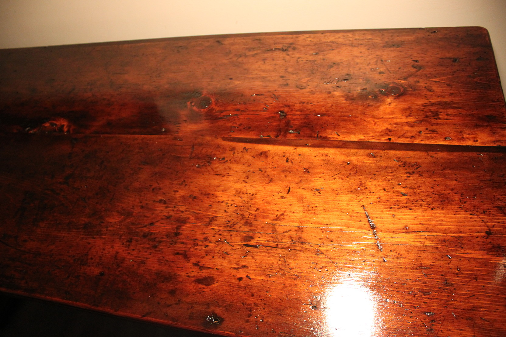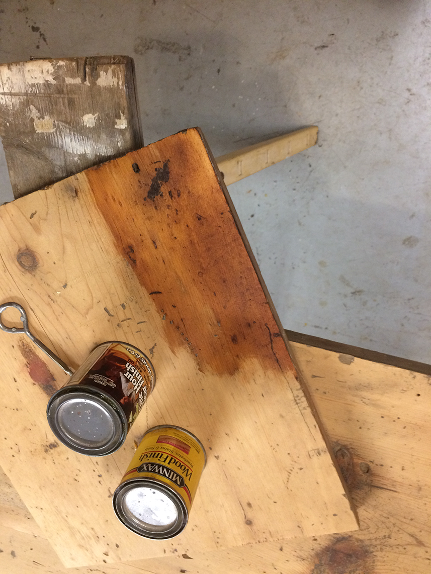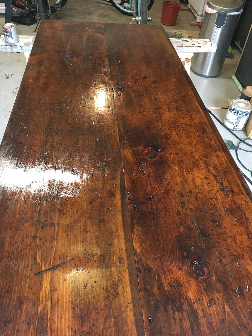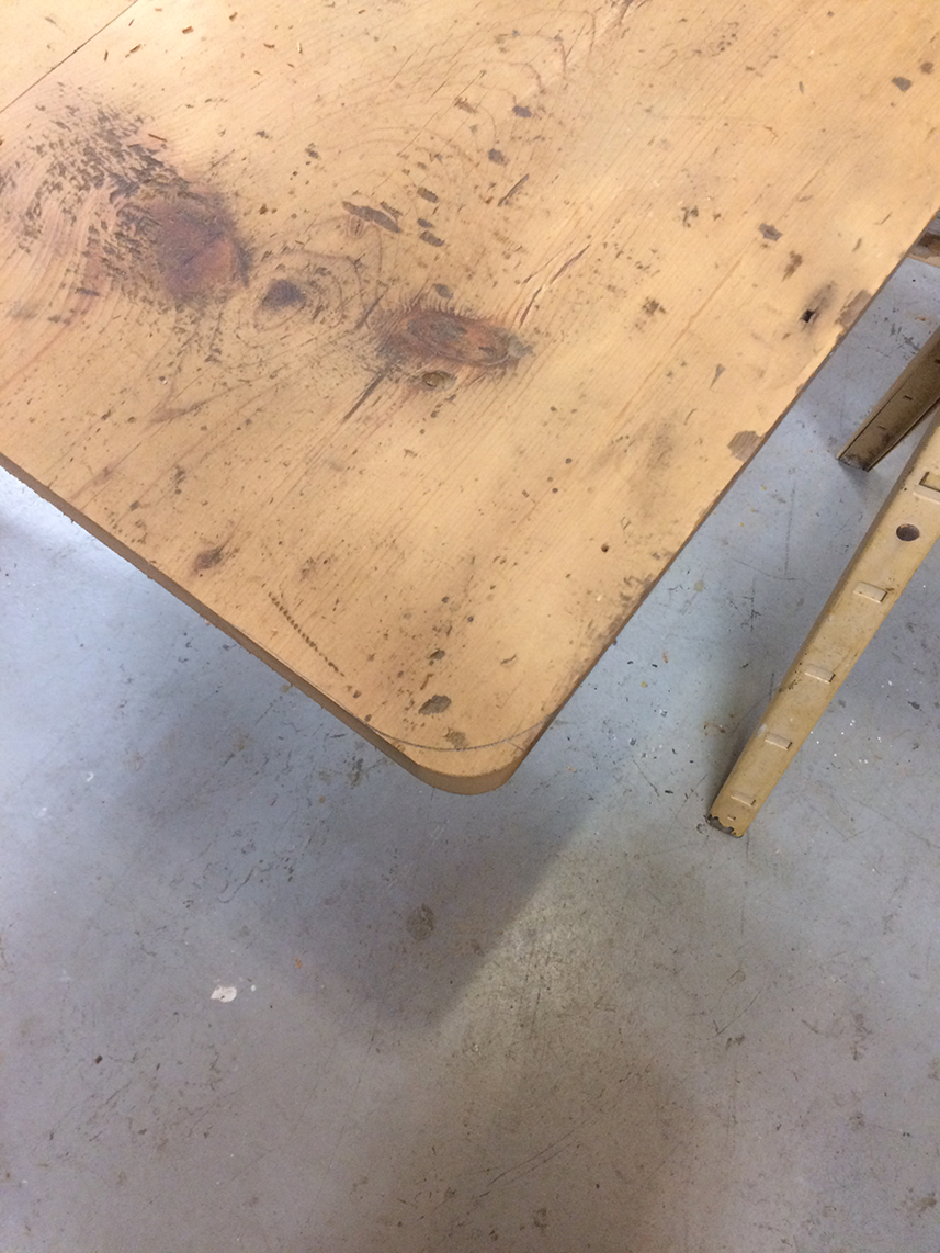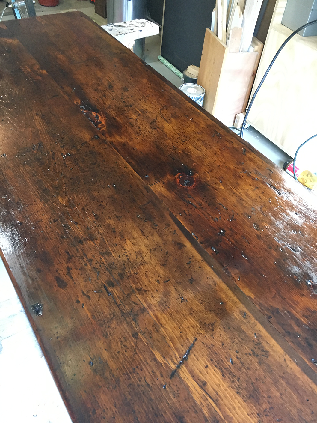 I recently purchased an adjustable standing desk base, but initially just dropped a 2'x4' birch plywood board on it. It was a nice introduction to working with a standing desk, but the working space was too small and the edges were very pointy. I wanted to see if I could make a nice desk from these boards from my father-in-law. He reclaimed them from the attic of a house on the Eastern Shore. Pine, I think, but wide (about 16") and very dirty and rough.